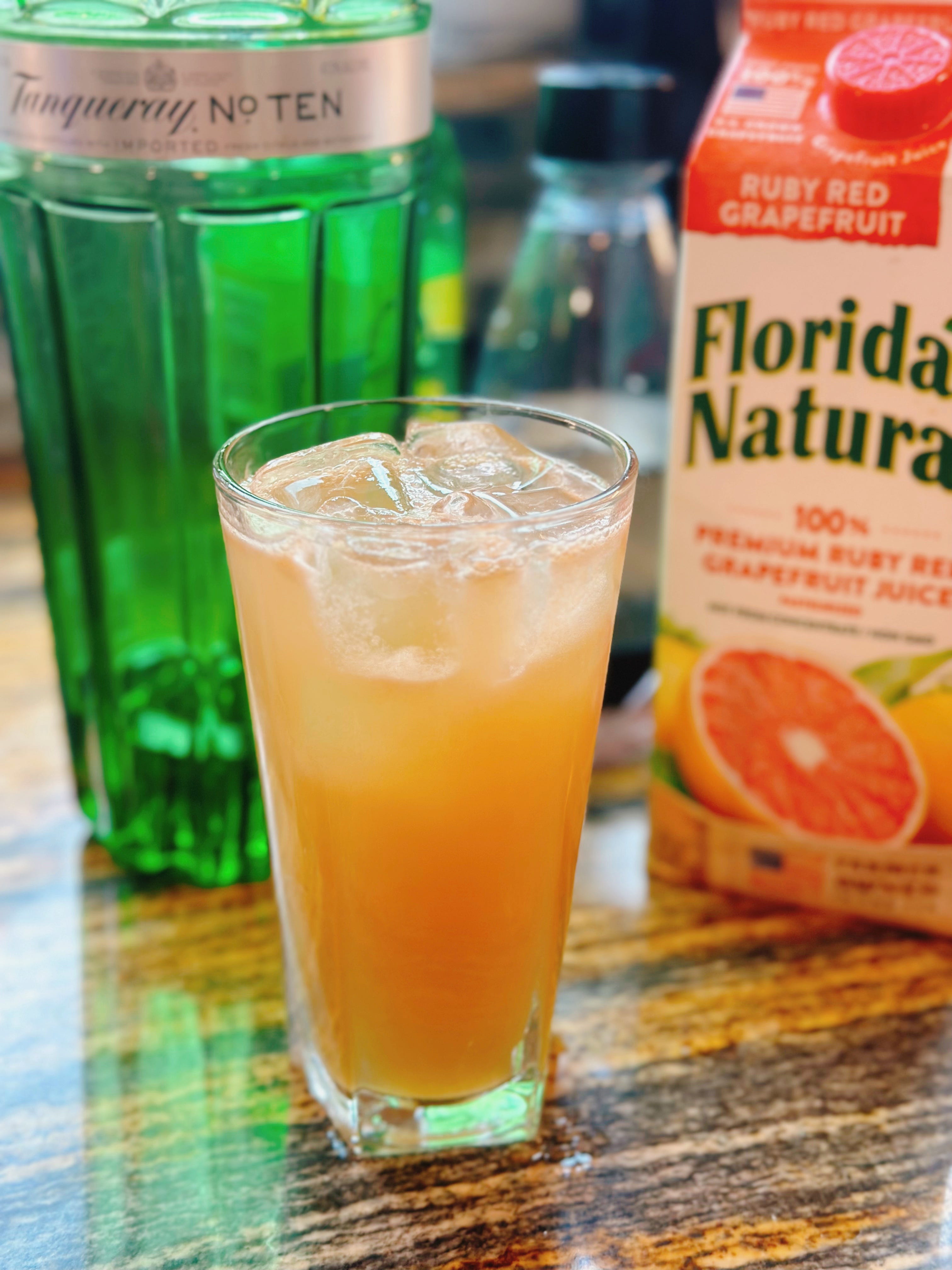 A delicious bittersweet cocktail is the Tom Collins, a classic from the 1870s. This version uses not just lemon juice but also grapefruit juice, which adds something extra.